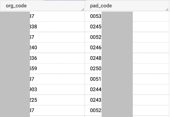 LPAD(POSTAL_CODE, 12, "0") AS pad_code -- or RPAD in some cases