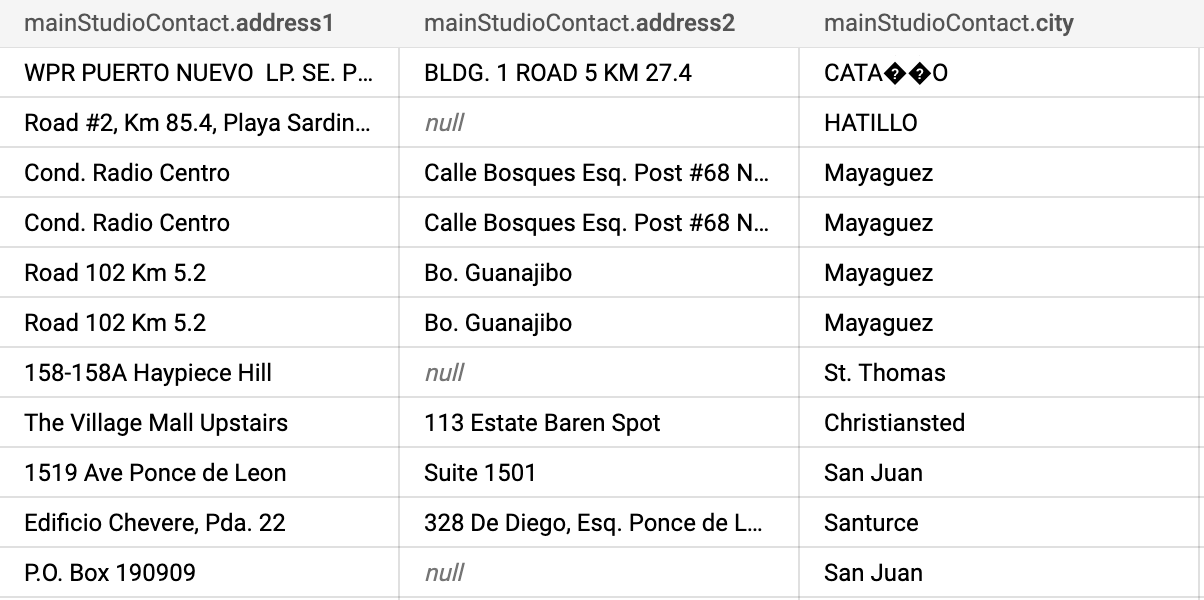 WHERE POSTAL_CODE IS NOT NULLCase 3: Array-like data