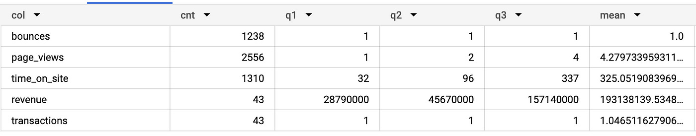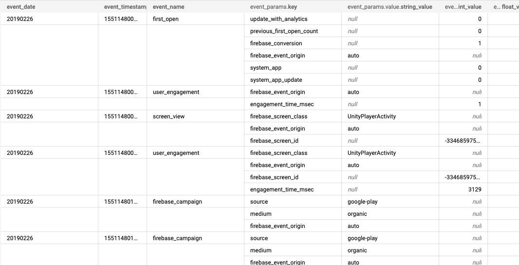 Another problem you might see in the sample data of Firebase is missing values marked as null. And if you have an eye for errors, or are simply OCD, you will notice that the event.int_value looks quite suspicious because the values are distributed strangely, from negative millions to a few thousand, or 0/1 in some rows. Well, there is indeed nothing technically wrong with this column; however, it is still considered “dirty” data and I will explain later.