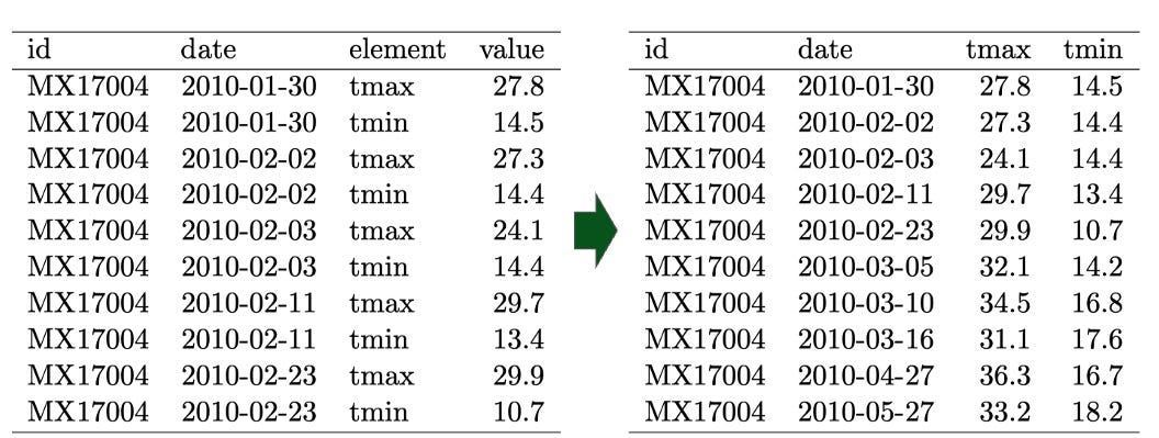 In this case, the dataset is called a long format table and we can also use the pivot operator to convert it back to the tidy standard.